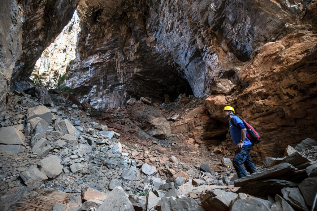 Rolph Gloor in der Höhle “Arco do André” (dt.: Andreasbogen), Nationalpark Peruacú, Minas Gerais, Brasilien